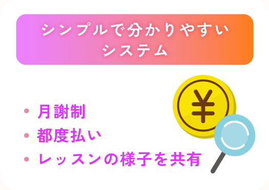 生徒様はもちろん、保護者様目線もたいせつに。レッスン代は保護者様にとって分かりやすい料金システムとしています。